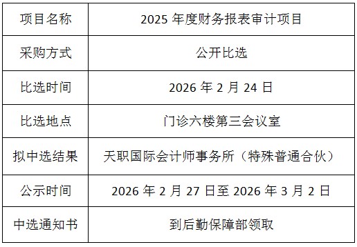 重医大附三院(方大医院)2025年度财务报表审计项目中选结果公示
