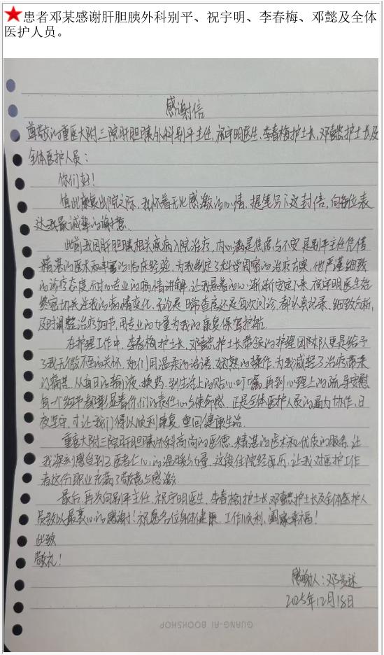 患者邓某的感谢信。