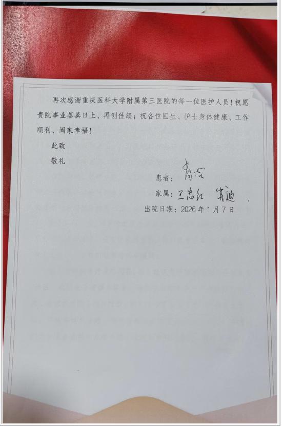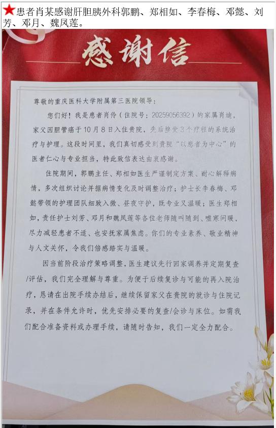 患者肖某的感谢信。