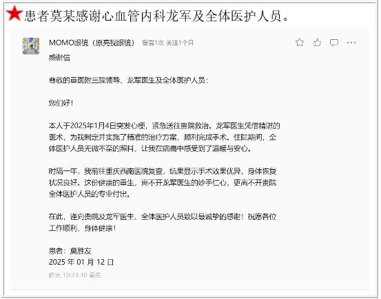 患者莫某的感谢信。