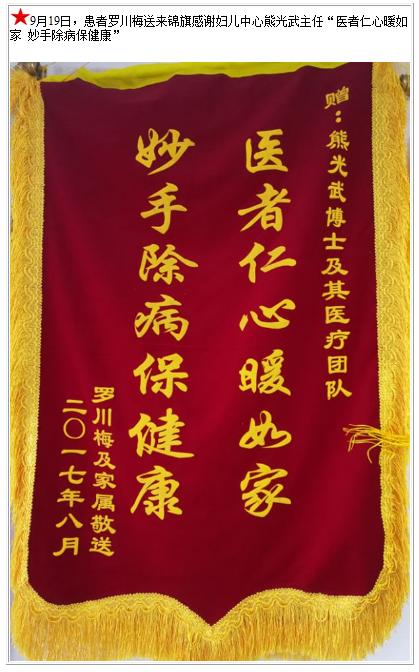 患者罗川梅送来锦旗感谢妇儿中心熊光武主任