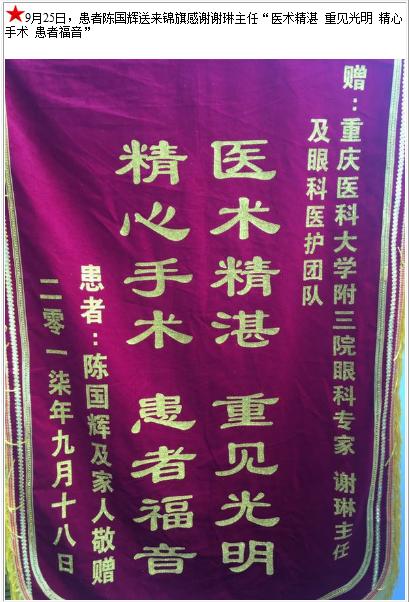 患者陈国辉送来锦旗感谢谢琳主任