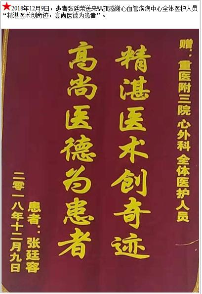 患者张廷荣送来锦旗感谢心血管疾病中心全体医护人员