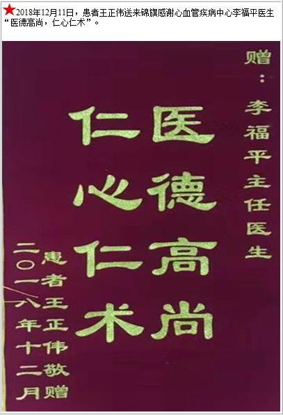 患者王正伟送来锦旗感谢心血管疾病中心李福平医生