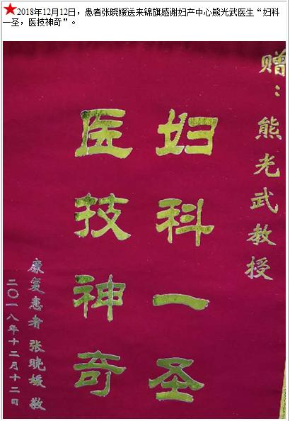 患者张晓媛送来锦旗感谢妇产中心熊光武医生