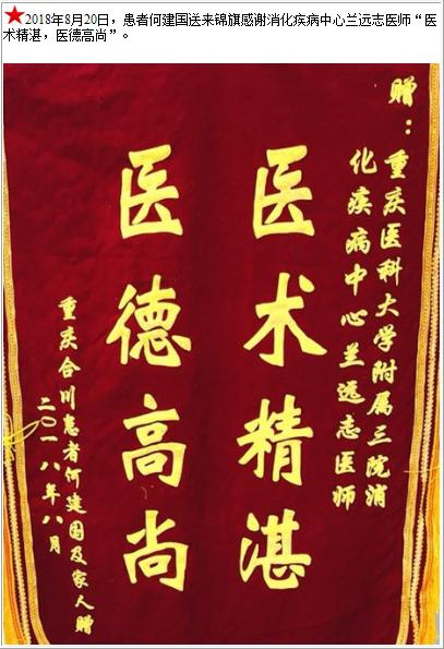 患者何建国送来锦旗感谢消化疾病中心兰远志医师
