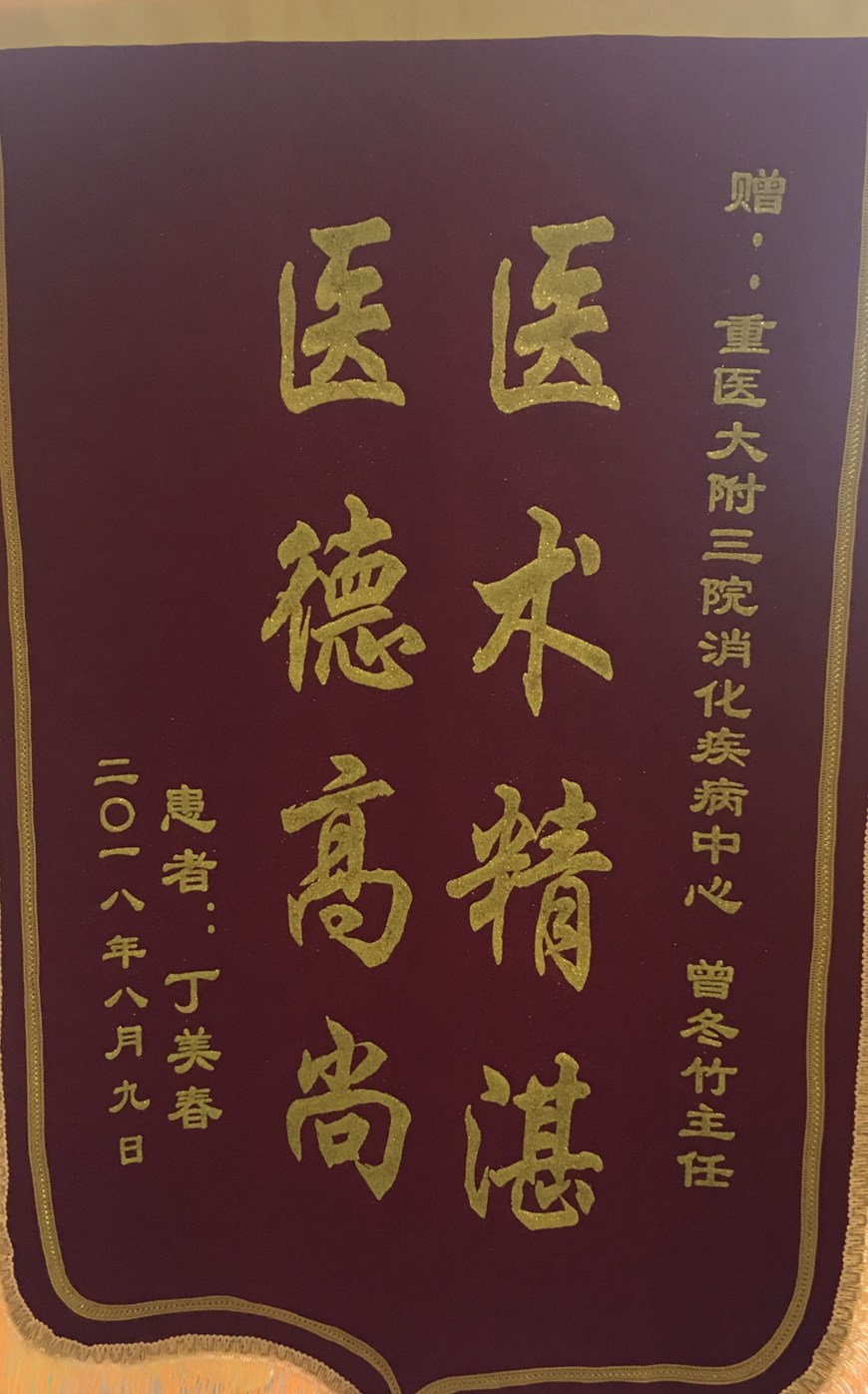 患者丁美春送来锦旗消化疾病中心曾冬竹主任