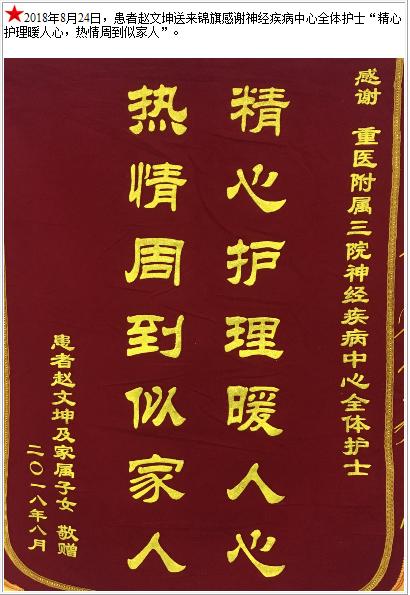 患者赵文坤送来锦旗感谢神经疾病中心全体护士