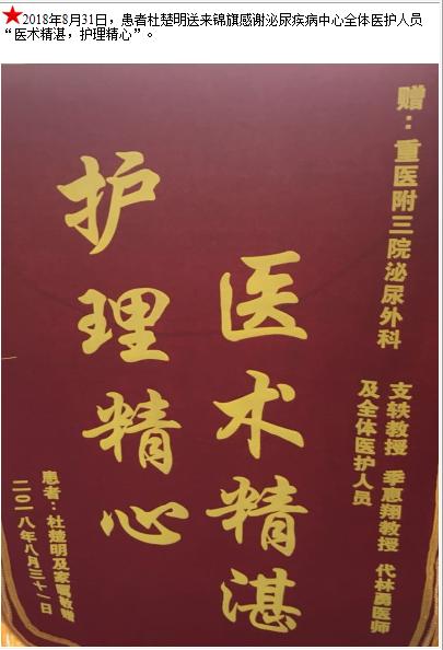 患者杜楚明送来锦旗感谢泌尿疾病中心全体医护人员