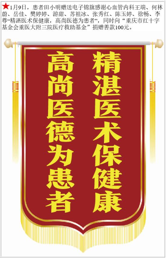 患者田小明赠送电子锦旗感谢心血管内科王端等,并向医疗救助基金捐赠善款100元。
