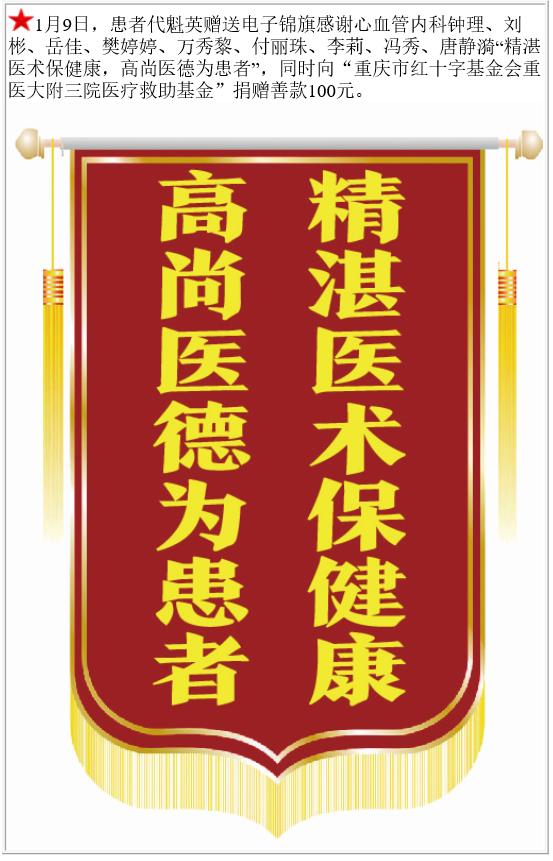 患者代魁英赠送电子锦旗感谢心血管内科钟理等,并向医疗救助基金捐赠善款100元。